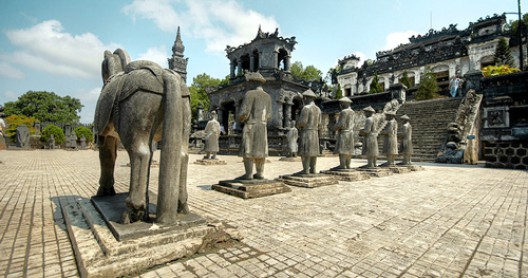 Chiều: Khởi hành đi Cố Đô Huế - Di sản văn hoá Thế Giới, xuyên hầm đường bộ đèo Hải Vân, dừng chân tại làng chài Lăng Cô chụp hình lưu niệm.Tham quan Lăng Khải Định - công trình mang nhiều trường phái kiến trúc khác nhau, kết hợp Đông -Tây, Âu - Á, Cổ Kim độc đáo so với các công trình kiến trúc truyền thống Việt Nam. Nhận phòng khách sạn 4* nghỉ ngơi.