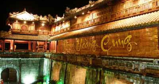 12h30: HDV Da Nang Travel Mart đưa quý khách tham quan Đại Nội (Hoàng Cung của 13 vị vua triều Nguyễn, triều đại phong kiến cuối cùng của Việt Nam: Ngọ Môn, Điện Thái Hoà, Tử Cấm Thành, Thế Miếu, Hiển Lâm Các, Cửu Đỉnh) Ðại Nội với kiến trúc nghệ thuật cung đình và vườn hào độc đáo đã được khởi công xây dựng vào khoảng hơn hai thế kỷ trước. Hoàng gia nhà Nguyễn bắt đầu bởi vua Gia Long qua 13 đời vua đã sinh hoạt tại Ðại Nội liên tục cho đến khi triều đại kết thúc sau tuyên bố thoái vị của vua Bảo Đại trong cuộc Cách mạng tháng 08 năm 1945.