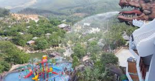 Đoàn sẽ di chuyển bằng xe điện để đến với khu vực “Bọng Rồng” với hồ bơi lớn trung tâm cùng nhiều trò chơi nước hấp dẫn dành cho trẻ em và cả người lớn.
